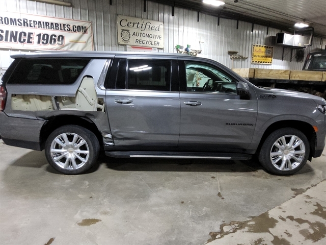 2021 SUBURBAN, HIGH COUNTRY, 6.2 ENGINE, LOT DRIVES, THIS VEHICLE HAS A SALVAGE TITLE DUE TO RIGHT SIDE COLLISION DAMAGE, 41,566 MILES, VIN#1GNSKGKL5MR381954